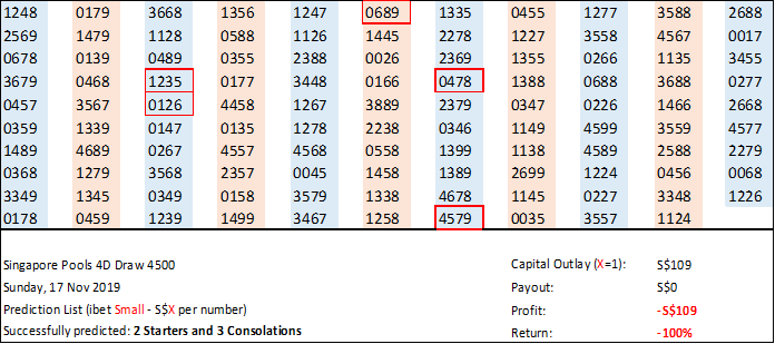 Results for SG 4D Draw 4500 - Sun, 17 Nov 2019